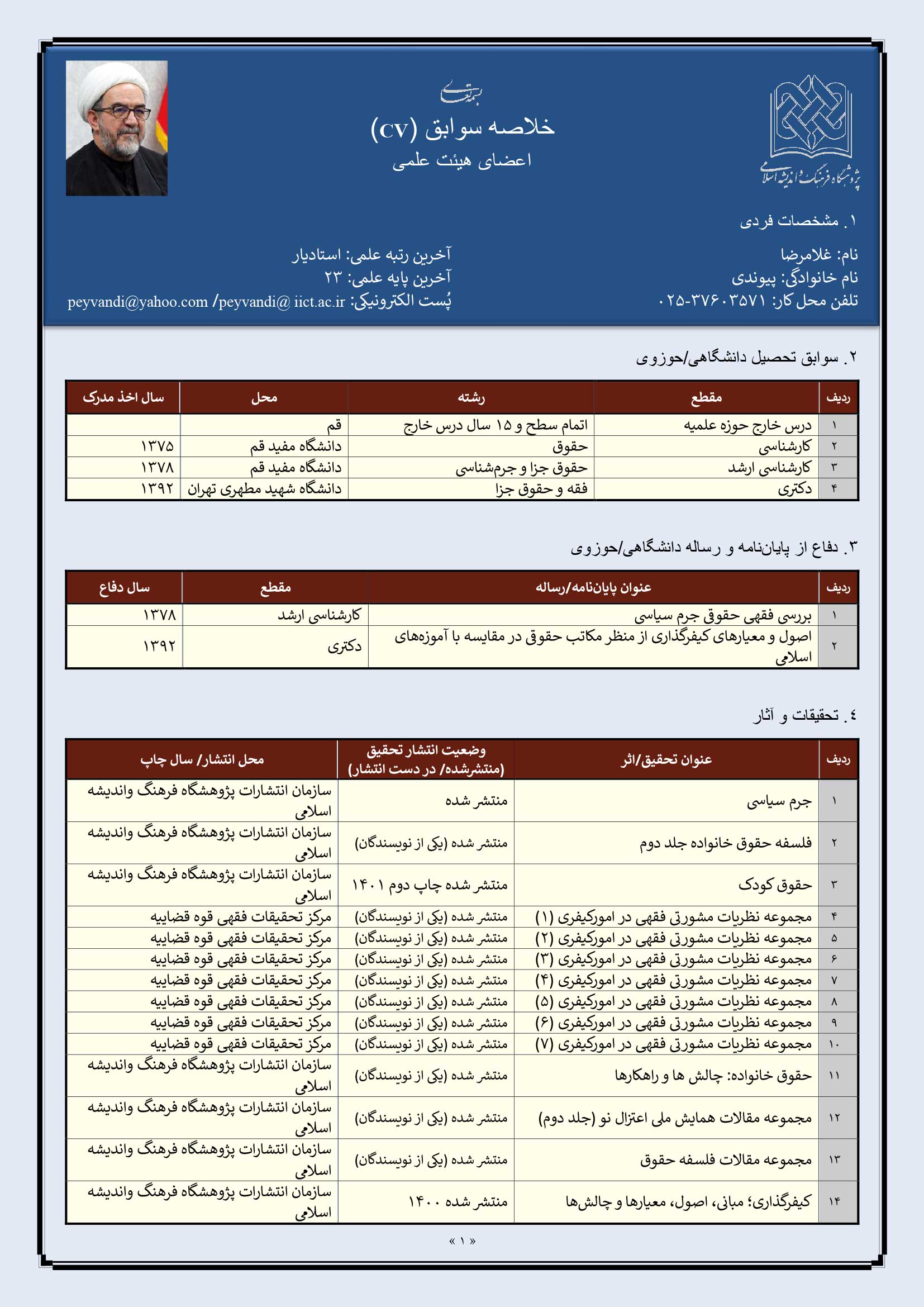 استادیار گروه فقه و حقوق پژوهشکده نظام های اسلامی