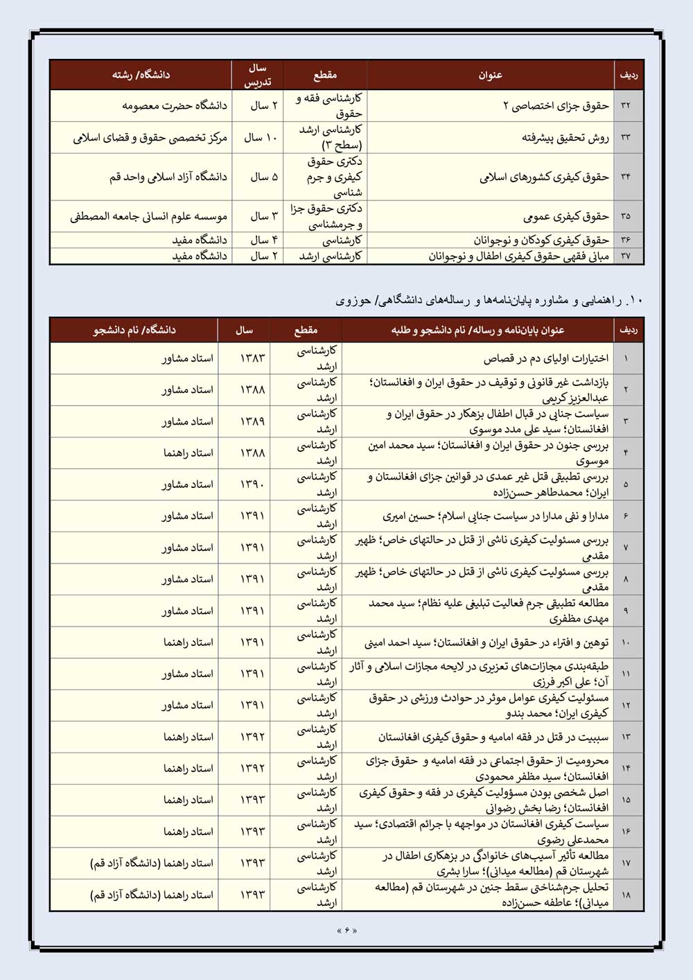 حوزه تمحض دوم: فلسفه حقوق کیفری(با تأکید بر مباحث حقوق بشر)