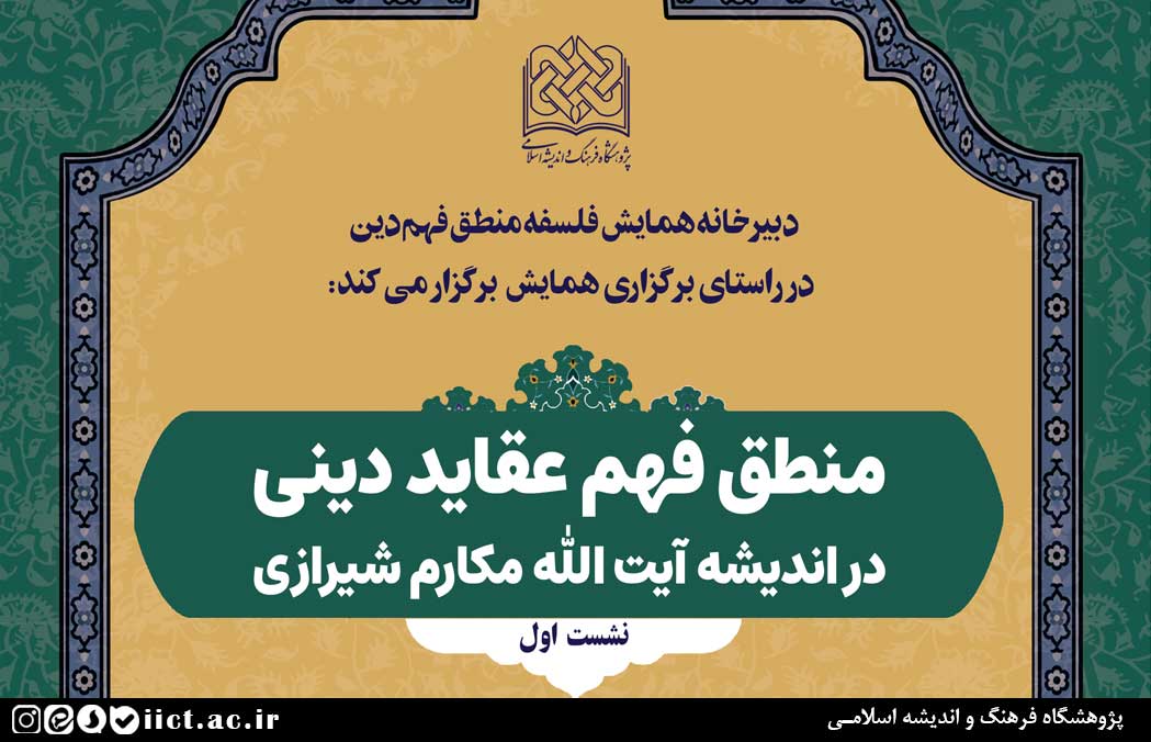 نشست علمی با موضوع “منطق فهم عقاید دینی در اندیشه آیت الله مکارم شیرازی” روز شنبه سوم آبان ماه سال جاری ساعت ۱۰:۳۰ در سالت جلسات پژوهشگاه فرهنگ و اندیشه اسلامی به نشانی: قم، بلوار ۱۵ خرداد، کوی شهید میثمی و همچنین به صورت مجازی برگزار میشود.