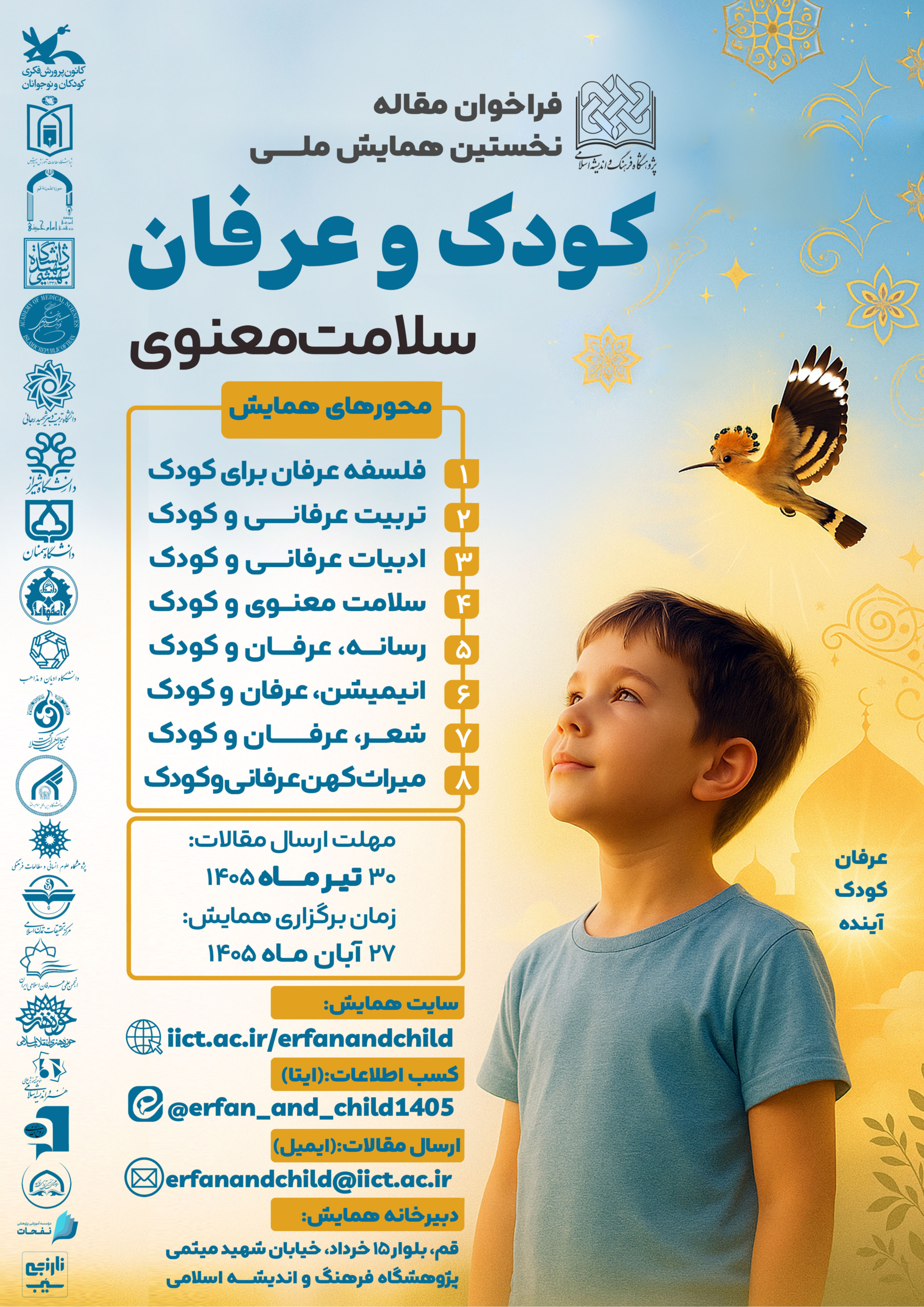 به گزارش روابط عمومی پژوهشگاه فرهنگ و اندیشه اسلامی، فراخوان مقاله «همایش ملی عرفان، کودک و سلامت معنوی» با شعار «عرفان، کودک، آینده» منتشر شد.