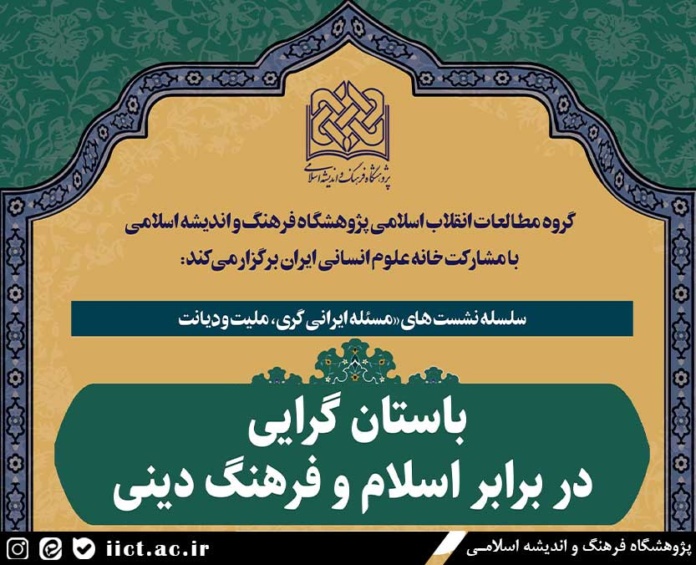 ه گزارش روابط عمومی پژوهشگاه فرهنگ و اندیشه اسلامی، نشست علمی با موضوع “باستان گرایی در برابر اسلام و فرهنگ دینی” از سلسله نشست های “مسئله ایرانی گری،ملیت و دیانت”توسط گروه مطالعات انقلاب اسلامی پژوهشگاه با مشارکت خانه علوم انسانی ایران به صورت حضوری و مجازی برگزار میشود.