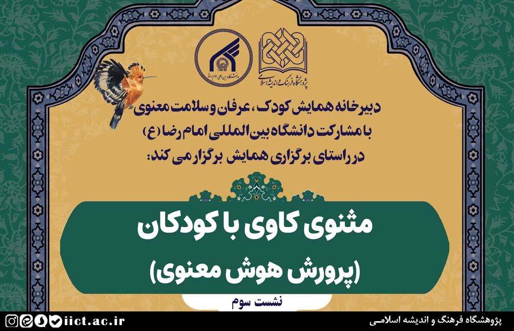 به گزارش روابط عمومی پژوهشگاه فرهنگ و اندیشه اسلامی، سومین نشست علمی از سلسله نشست های همایش ملی کودک، عرفان و سلامت معنوی با عنوان «مثنوی کاوی با کودکان (پرورش هوش معنوی)» توسط دبیرخانه همایش با مشارکت دانشگاه بین المللی امام رضا علیه السلام به صورت حضوری و مجازی برگزار میشود.