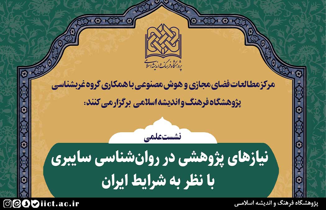 به گزارش روابط عمومی پژوهشگاه فرهنگ و اندیشه اسلامی، نشست علمی «نیازهای پژوهشی در روانشناسی سایبری با نظر به شرایط ایران» توسط مرکز مطالعات فضای مجازی و هوش مصنوعی با همکاری گروه غربشناسی پژوهشگاه فرهنگ و اندیشه اسلامی به صورت حضوری و مجازی برگزار میشود.