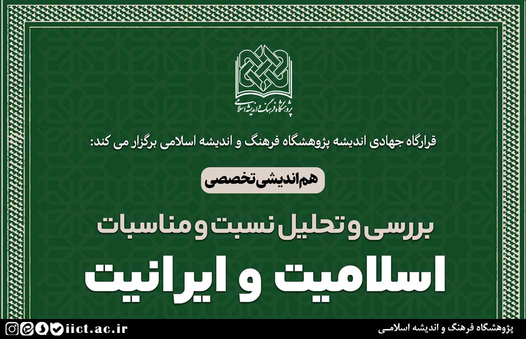 هم اندیشی تخصصی “بررسی و تحلیل نسبت و مناسبات اسلامیت و ایرانیت” روز شنبه ۵ آذر سال جاری ساعت ۱۰:۰۰ تا ۱٢:۰۰ به صورت حضوری در تالار فرهنگ پژوهشگاه فرهنگ و اندیشه اسلامی به نشانی قم، بلوار ۱۵ خرداد، کوی شهید میثمی و همچنین به صورت مجازی برگزار میشود.