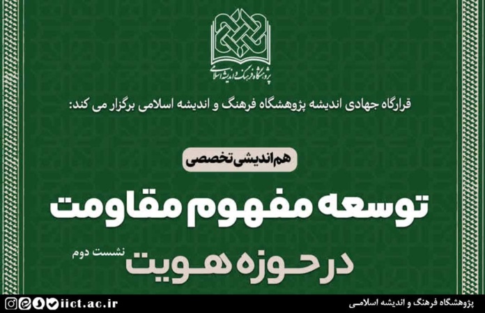 هم اندیشی تخصصی “توسعه مفهوم مقاومت در حوزه هویت” روز چهار شنبه سوم دی ماه سال جاری ساعت ۱۳ به صورت حضوری در تالار فرهنگ پژوهشگاه فرهنگ و اندیشه اسلامی به نشانی قم، بلوار ۱۵ خرداد، کوی شهید میثمی و همچنین به صورت مجازی برگزار میشود.