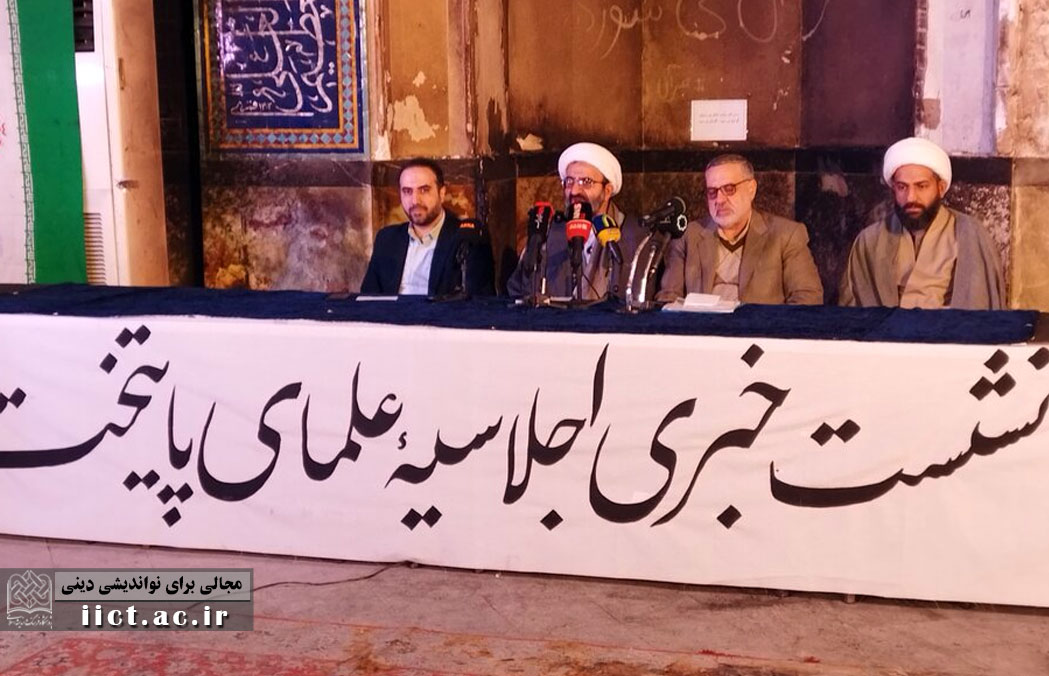 نشست خبری «اجلاسیه علمای پایتخت» با عنوان «فجر مقاومت» پیش آغاز ظهر امروز با حضور دکتر «مهدی رضائیان» دبیر اجرایی اجلاسیه و حجت الاسلام «محمد علی رحیمی صادق» مدیر حوزه های علمیه استان تهران و دبیر علمی همایش و محمدمهدی نجفی رئیس حوزه ریاست پژوهشگاه در مسجد شهید بهشتی تهرانپارس (یکی از مساجد سوخته در فتنه اخیر) برگزار شد. در ابتدای نشست رضائیان دبیر اجرایی اجلاسیه ضمن اشاره به ضرورت برپایی این اجلاسیه تصریح کرد: نهادهای مختلفی در برپایی این اجلاسیه ما را یاری می کنند و لازم می دانم در همین جا از همکاری صمیمانه آنها تشکر داشته باشم.