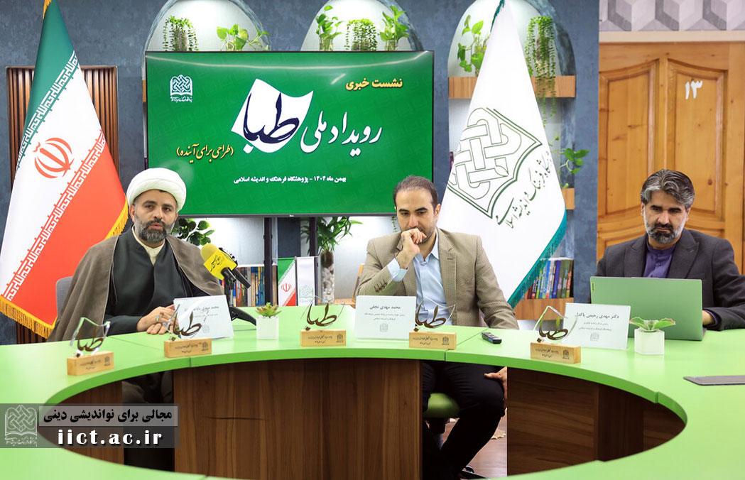 به گزارش روابط عمومی پژوهشگاه فرهنگ و اندیشه اسلامی به نقل از خبرگزاری حوزه، نشست خبری آیین اختتامیه رویداد ملی طبا (طراحی برای آینده) با حضور مهدی رحیمی پاکدل، رییس مرکز رشد و نوآوری پژوهشگاه فرهنگ و اندیشه اسلامی، محمدمهدی نجفی و حجت الاسلام والمسلمین محمدمهدی باباجان نژاد، مدیر مدرسه علمیه امام رضا(ع) تهران، امروز ۲۵ بهمن ماه در سالن جلسات پژوهشگاه فرهنگ و اندیشه اسلامی برگزار شد.